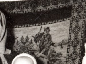 Tokratni motiv je lovski; lovec ogovarja dekle na bregu….Običajno je motiv dopolnjevalo tudi krajše besedilo. Izbrala sem le nekaj primerov, ki so se ohranili na deklcih, ki so nekoč viseli po naših domovih:
