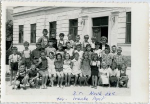 Prvo šolsko sliko sem našel iz tretjega razreda, ki smo ga obiskovali v šolskem letu 1959/60. Pred šolo v Novi vasi nas je fotograf Žnidaršič z učiteljico Ivanko Popit, ki nas je poučevala dve leti, slikal ob koncu šolskega leta. V razredu nas