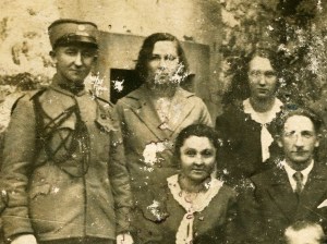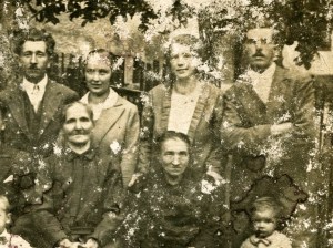 Fotografija je slabše ohranjena. V ozadju se vidijo vrata v hlev in desno ograja njihovega vrta. Drevje je že ozelenelo, otroci so v kratkih rokavih. Ob kakšni priliki so se zbrali, pa ne vemo.