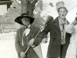 Ni cudno, da so se oblekli v jahalne hlace in skornje. To je ostalo pac od okupatorjev, menda jim mame in dekleta niso sivale oblek za pusta! Sploh pa, ker so vedele, da jih nekaj dni ne bo domov.