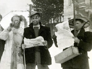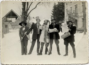 Na zasneženi cesti med staro Brestovo direkcijo zadaj na desni strani (zdaj je v tem poslopju notariat) in Pocinovo hišo, kjer na podstrešju sušijo rjuhe, so se pred fotoaparat Jožeta Žnidaršiča postavili namačkorani cerkniški fantje. Nekateri izmed njih so morali kmalu po pustu k vojakom. Pa so rekli: “Dajmo ga še malo posrat, potem pa k vojakom!”.