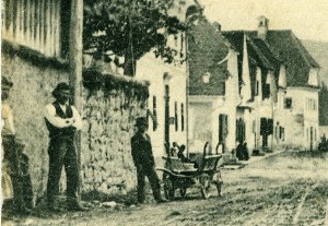 Kot na vseh starejših razglednicah, je tudi tu videti veliko ljudi, ki so budno spremljali delo fotografa in nikakor niso hoteli izpustiti redke priložnosti, da se fotografirajo, čeprav sem skoraj prepričana, da večina njih slike nikoli ni videla. Mogoče pa? Razglednica je posneta res daleč nazaj, saj imajo tudi deklice krilca povsem do tal. Ne moški ne fantiči pa niso stopili pred fotografa brez pokrivala.