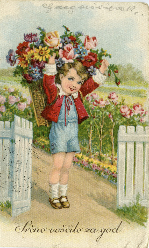 Srčno voščilo za god, pravi razglednica. Pošiljatelj pa je z njo voščil božične in novoletne praznika. Namen je važen.Slovarček: