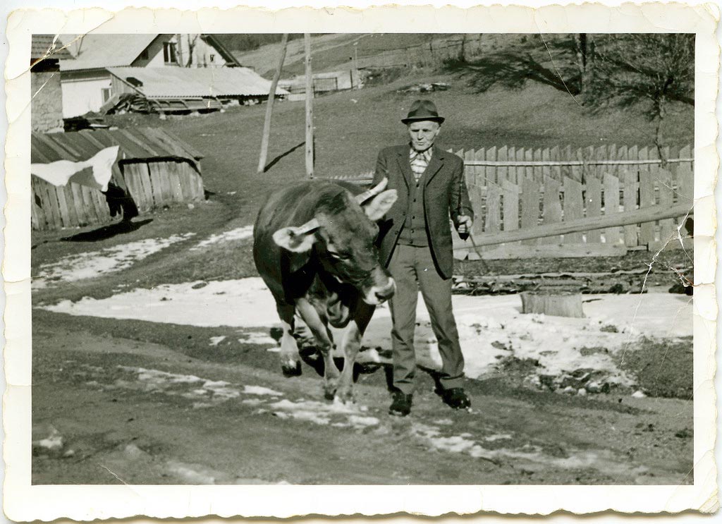 V Bukovici na Babnem Polju, blizu Jakopovega hleva, je ljubiteljski fotograf, najverjetneje Tone Vesel, pritisnil Franca Miklavčiča, Jakopovega uojca in njegovo kravo. Čas bi utegnil biti nekje po letu 1961. Uojc ni ravno delavniško oblečen, prav snažen je, in na glavi ima ta boljši klobuk, kakršne je v šestdesetih letih izdeloval Šešir iz Škofje Loke. Iz zajčje dlake so menda bili narejeni in zelo moderni, taki, z malo manjšimi krajci … Srajco pa ima kot po navadi flanelasto, križasto in do vrha zapeto, vrh nje pa pleten lajbelc z gumbi.