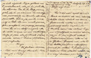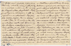 Radovedna sem, ako si še v Ljutom. Sporoči mi, ako Ti še lahko pošljem obljubljeno med. p. Potem Ti jo precej naredim. Tudi škatlo medu bodem poslala. V Ljubljani sem srečala mamco iz Planine, oblubila sem ji, da prideve v nedeljo s Silvo in Fr. na obisk ter Marjančka pogledat. Kako je s Tvojim zdravjem? Ali si popolnoma okreval? Kaj pa zdaj piješ, ko ne smeš vode? Jaz bi Ti svetovala, da si skuhaš ruski ali lipov čaj, ter tistega mrzlega piješ. Prav dober je za piti s medom ali mlekom. Le nekuhane vode se varuj. Pi malo vina in kisle vode. Ali imaš kaj čokolade? Bodi vedno previden, da ne zapadeš bolezni. Sedejka mi je pravila, da se v kratkem preselite in to radi bolezni, upam pa, da se je mogoče stanje zboljšalo. Papa je preuzel magazine Bajca. Nakupoval bode zopet seno, ko se vrne iz Dunaja. Za sedaj je naložil včeraj zadnji vag. Namerava iti na Dunaj; malo v razvedrilo in tudi radi kupčije. Uzame tudi Silvo seboj. Potreben je, da se malo odpočije in okrepča, ker se je med vsem časom kupčije zelo zmučil. Pri nas je drugače vse po starem. Da bi Postojno zapustili, smo nehali misliti. Strah pred Lahi je čist zginil. Tega gotovo ni L. pričakoval, da je ta pot tako strma. Da bi le Bog pomagal, da bi se našim še nadalje vse posrečilo in kmalu do miru privedlo. Silva je prišla z menoj v Post. Da mi malo pomaga, mogoče se poprej pozdravim. Pa si ne delaj mogoče skrbi radi mene, ni nič nevarnega, bolje je pač, ako je človek popolnoma zdrav. Srčne pozdrave in poljube