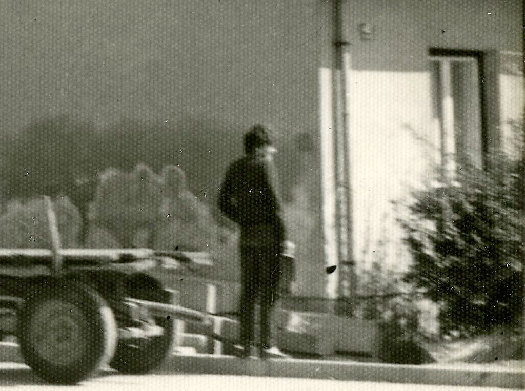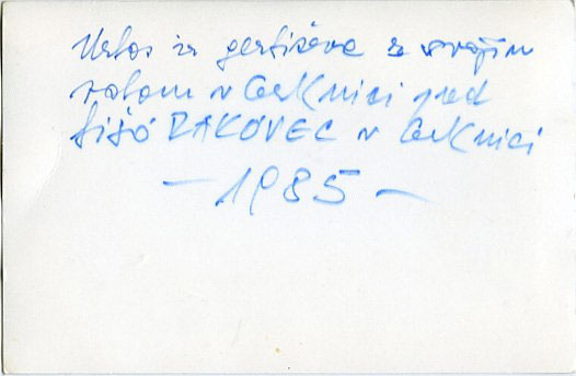 Zadaj se vzpenja Slivnica. Zdaj po več kot tridesetih letih se lepo vidi, koliko so zrastli borovci, saj so bili leta 1985 precej manjši. Tudi nismo ugotovili, čigav je imv kombi.