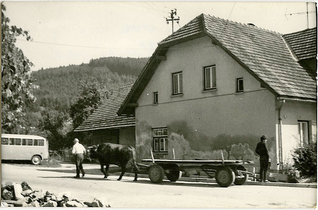 Štefan Bogovčič je zapisal: “Urbas iz Gerbičeve s svojim volom v Cerknici pred hišo Rakovec v Cerknici – 1985 – “.Kraj: Cerknica