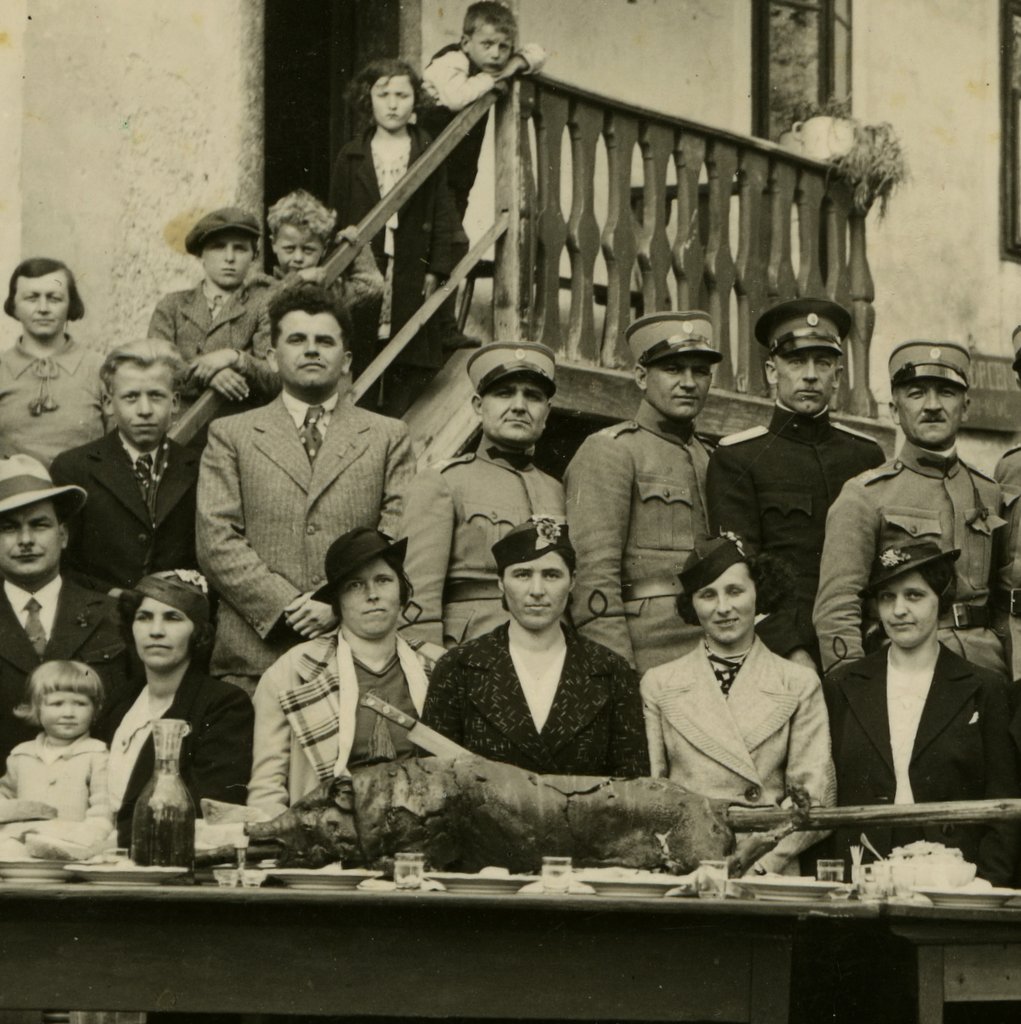 Na ta dan so se pred grahovsko fužino zbrali orožniki, financarji in drugi pomembni krajani z ženami, da bi skupaj praznovali. Manjkal ni niti pes.
