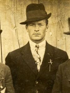 Naslednji z leve je Rafael Martinčič, Poladinov, ki samozavestno z roko v boku zre v gledalca. Na prsih ima cvet in še nekaj okraskov, ki jih ne morem razločiti, v prsnem žepu pa svetel robček. Kakšna priložnost je bila, da so štirje fantje tako okrašeni? Za vojaški nabor se zdi okrasje nekoliko netipično. Kaj drugega bi še lahko bilo? Cvetovi so temni, najbrž rdeči – je mogoče, da so praznovali prvi maj? Vsaj za naslednjega na sliki je znano, da je bil član delavskega sindikata na Marofu, kar me je napeljalo na misel o prvomajskem praznovanju, vendar nimam nobenega drugega dokaza za to.