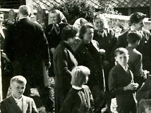 Ta dan je bil velik praznik za vidovsko faro in udeležilo se ga je veliko število ljudi. Po končanem uradnem delu so vsi komaj čakali na pozdrav in pogovor z domačimi duhovniki. Tako na tej sliki vidimo g. Makovca in g. Strleta, kako kramljata na pokopališču, obkrožena z domačini.