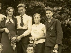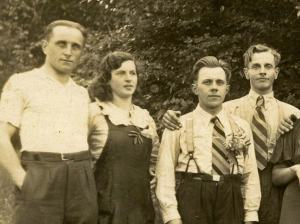 V drugi vrsti je prvi na levi Lojze Levec, Bazizlov iz Viševka, poleg pa Tastarih Francka z Babne Police. Sledi še eden od Mežnarjevih s Poljan. Kaj pa, če je to Karel oziroma Karol, po domače kar Korle? Čez rame ga drži Janez Špeh, Gržetov iz Podgore. Janez je drugo roko položil na ramo Novakovi Micki, Stankovi sestri z Dolenjih Poljan, z druge strani pa jo čez rame drži mladenič iz Loškega Potoka, čigar ime se ni ohranilo. Poleg njega je Mežnarjevo dekle s Poljan, a ne vemo, kako ji je bilo ime. Zadnji na desni je Jernejčkov Feliks, Truden iz Šmarate, kot je tudi njega skrbno zapisala Fani Truden po spominih svoje mame.