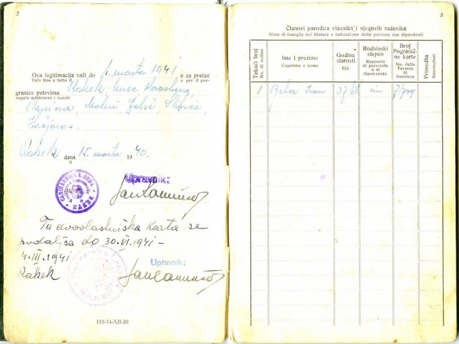 1940 Unec – Legitimacijska karta