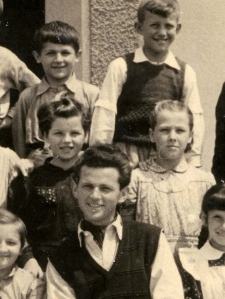 Učitelj se je podpisal, ampak kaj, ko ne znamo prebrat. Zapisal je, da je slika nastala junija 1955. Slavka je šla v prvi razred leta 1950, naslednje leto v drugega in 1952 so se slikali. Očitno se je učitelj zmotil.Viri: