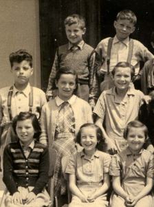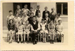Učitelj se je podpisal, ampak kaj, ko ne znamo prebrat. Zapisal je, da je slika nastala junija 1955. Slavka je šla v prvi razred leta 1950, naslednje leto v drugega in 1952 so se slikali. Očitno se je učitelj zmotil.Viri: