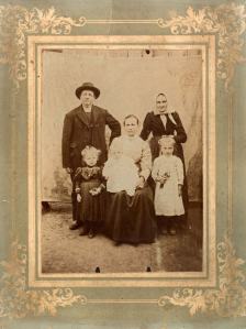 Na sliki, v starinskem kartonskem okvirju, je družina Ipavčih, kot se je po domače takrat reklo pri njih.