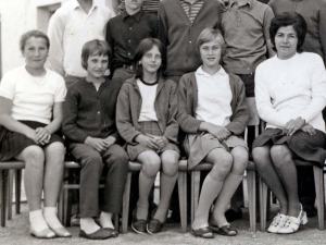 Šesti razred spomladi 1972 ponovno slikan pred vhodom v osnovno šolo 11. maj v Grahovem. Od takrat je preteklo že kar nekaj vode in se marsikaj zgodilo.