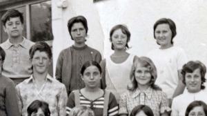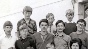 Šesti razred spomladi 1972 ponovno slikan pred vhodom v osnovno šolo 11. maj v Grahovem. Od takrat je preteklo že kar nekaj vode in se marsikaj zgodilo.