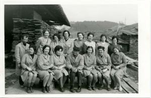 Letnico nastanka slike ugibamo. Zagotovo pa je nastala med leti 1974 in 1982. Takole so se postavile pred aparat delavke furnirnice na Brestu z dvema moškima predstavnikoma.