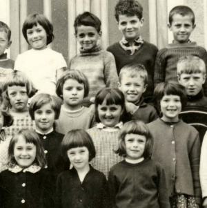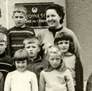 Na sliki je 30 otrok, čeprav jih je prvi razred obiskovalo 32. Dva sta bila bolna. Najprej je zbolel za zlatenico Stane Čeček. Pa je tovarišica k njemu poslala Andreja Jernejčiča, da mu nese zvezke in pogleda, kako je z njim. In glej ga zlomka. Bolezen je ujela tudi Andreja, zato ju na sliki žal ni. ” Uživala” sta vsak na svojem domu. Ja, otroške nalezljive bolezni v času šole so zakon – skačejo iz učenca na učenca kot kobilice.