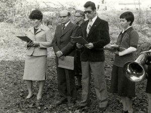 Član gradbenega odbora za izgradnjo lekarne v Cerknici Leon Razdrih je ob občinskem prazniku, ki se je proslavljal 19. oktobra, na Kravanjetovem vrtu leta 1977 položil temeljni kamen.