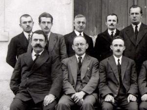 • Sedijo: prvi z leve Franjo Tavčar, župan.