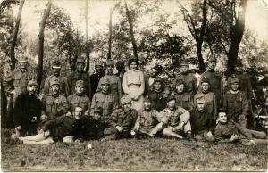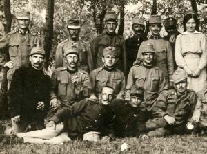 Levo ob bolniški sestri stoji Valentin Perko. Sestri je napisal “… ampak jaz sem preveč stal v senci sem preveč črn.” V soboto pred izbruhom vojne smo imeli navaden društveni sestanek in smo se tolažili po večernih časopisnih izjavah, da se bo še vse v miru poravnalo in smo šli potolaženi spat. A kakor strela iz neba je prišla ob enajsti uri ponoči (med 26. in 27. julijem) brzojavna vest, da je razpisana delna mobilizacija, to je ves tretji kor (vojaška enota), pod katerim služijo večinoma Slovenci. In med nami je zavladala žalost, ker smo v ponedeljek jemali slovo od naših članov in prijateljev. Prvi so šli v ponedeljek ob 8. uri zjutraj k svojim polkom. Slovo je bilo težko, ker je vsak mislil na brate in sestre, starše, prijatelje in na ljubo domačo vas. Ali jo bom še videl zdrav, ali nikoli več! Bil je strašen tisti ponedeljek, vse se je trlo na postaji. Vlak za vlakom jih je odvažal izpred naših oči tja v neznane kraje groze in trpljenja.
