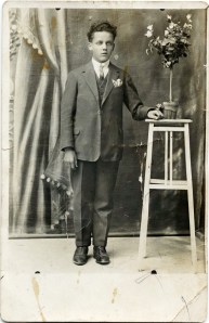 Po končani učni dobi si je kot krojaški pomočnik Lojze leta 1927 našel novega delodajalca pri krojaču na Lipsenju. Ob tej priliki se je pri fotografu Šegi v Grahovem dal slikati in pri 18. letih tako dobil svojo prvo fotografijo. Sam si je izdelal svečano obleko s telovnikom in zanimivim zapenjanjem suknjiča. Večkrat je povedal, da si je tudi svoje prve spodnje hlače izdelal sam, prej jih pač ni imel. Kljub 18. letom je pri golobradem mladeniču videti nekaj skrbi, kako bo cela stvar s slikanjem uspela.
