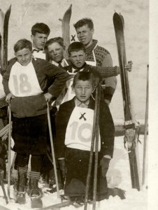 Neznani. Zanimiv je pogled na takratno smučarsko tekaško opremo od palic, smuči do obleke v primerjavi z današnjo. Smuči so bile takrat večnamenske, namenjene različnim vrstam smučanja, ne pa tako kot danes, specializirane za vsako smučarsko panogo posebej.