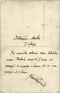 Na zadnji strani fotografije piše: “Istenič Maks II. skup. Pri smuški tekmi dece Sokola Unec-Rakek dne 28. II. 1932 in dosegel 10. mesto v času 30´ 3῎ na progi 2,8 km. Gornik”