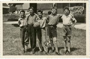 Bilo je okoli leta 1957. Neznani fotograf nas je posnel v “pravi športni opremi”; sicer ne enotni, vsakdo je imel pač svoj stil, bolj finančnim razmeram staršev primeren. Fantje smo se pogosto zbirali na prostoru kjer je danes poslovilna vežica ob unškem pokopališču, in igrali nogomet, med dvema ognjema in podobne igre z žogo. Tu je bil kar velik, večnamenski javni prostor, takrat tudi še ni bilo ceste proti Rakovemu Škocjanu in Postojni (zgrajena v zimi 1963/64). Pa tudi avtomobilskega prometa skoraj ni bilo, tako da smo se lahko mirno posvetili igri, če le ni prišel klic od doma, da moramo narediti to in ono, in veselje in igra sta splavala po vodi.