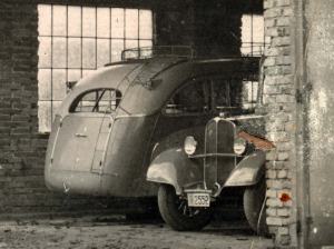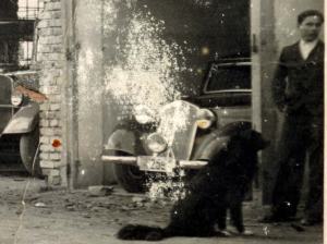 Na tem izrezu je v garaži parkiran Meletov DKW Luxus kabriolet, ki ga je Anton Mele kupil 30. avgusta 1939. Na desni strani pa je Ivan Slabe iz Ivanjega sela. Pri izdelavi avtobusov so sodelovali razni mojstri in eden izmed njih je bil tudi možakar s slike.Slovarček: