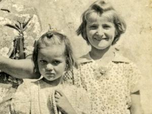 Tilka se še spomni, zakaj je tako resna na sliki: malo se kuja, ker je bila vso pot kregana, saj so se njene bele nogavičke med dolgo potjo na gležnjih umazale s črno pasto za čevlje, s katero so bili namazani njeni čeveljci. Naša mama je temu rekla, da sem se okresala – med hojo se je čevelj podrgnil ob nasprotno nogo in na njej pustil sledove tistega, kar je pač bilo na njem – kako znano se mi zdi vse to na sliki … Bele nedeljske nogavice so bile prava mora. Resda so bile lepe, a umazale so se mimogrede, bodisi z globinom, blatom, travo ali že s čim in mame so se jezile, kajti pranje takih žab je pomenilo še en kos več, ki ga je treba namočiti, nažajfati, zmencati, skuhati v lugu, izprati v potoku in obesiti na sonce … spet in spet.