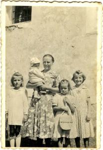 Na sliki, posneti 16. avgusta leta 1952, je mama Dorica Mavrin, Štodlova iz Novega Kota s štirimi otroki. Dva sta njena – deček v naročju in deklica s torbico – drugi dve deklici sta njeni nečakinji.