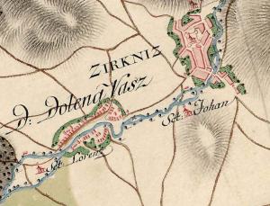 Pogled na Cerkniško jezero, Cerknico in Slivnico – objavljeno v Baltazar Hacquet: ORYCTOCRAPHIA CARNIOLICA, 3. zv., Leipzig 1784, hrani Narodni muzej Slovenije.