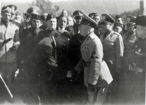 Na sliki se ban Natlačen klanja Mussoliniju in njegovemu spremstvu.