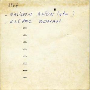 Dva od moških na Štodlovi domačiji, gospodar in zet leta 1967, izvemo iz zapisa na zadnji strani slike.Slovarček: