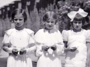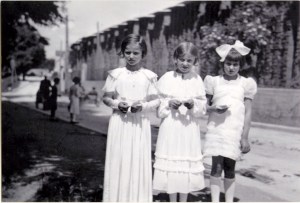Za začetek si poglejmo tole zanimivo fotografijo. Na fotografiji so deklice, ki so ob birmi na Rakeku leta 1937 pozdravile škofa Rožmana.