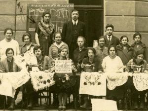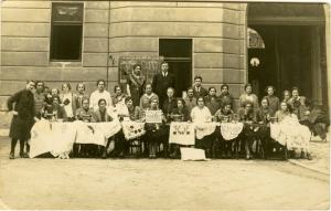 Slika predstavlja udeleženke in izdelke še enega od mnogih šiviljskih tečajev, ki so bili med vojnama zelo številni. Ta naj bi bil na Rakeku, prepričani pa nismo. Uspelo nam je prepoznati dve udeleženki, ampak sliko je treba objaviti, ker vsega o šivanju pa še nisem povedala. Pa še bo ostalo za kdaj drugič.