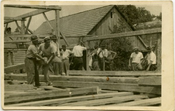 1948 Podcerkev – Postavljanje cimpra za zadružno štalo