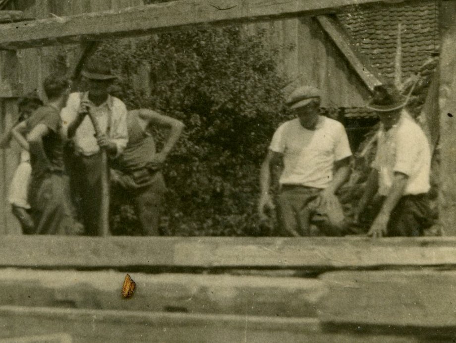 1948 Podcerkev – Postavljanje cimpra za zadružno štalo