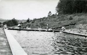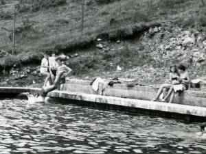 Fotografija iz zbirke Franca Gornika iz leta 1961 prikazuje kopalce na brestovem bazenu na Slivnici.