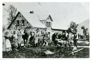 Na sliki je kovačija A. Avsca iz Pudoba, po domače Šmitova kovačija. Kot navaja Janez Kebe v svoji knjigi o Loški dolini in Babnem Polju, naj bi slika nastala okrog leta 1910. Na levi je mojster z ženo, na desni štirje pomočniki. Poleg stvari, ki jih običajno delajo kovači, so delali še pluge z lesenim ogrodjem. Je pa na sliki videti, da so se pripravili na fotografiranje. Lepo so oblečeni in pozirajo vključno z vso živino.