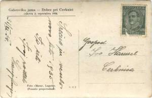 Podatek o odkritju jame me je zelo razveselil. Razglednica je potovala v Cerknico, žal pa ne vemo, od kod, če je bila sploh poslana.Viri: