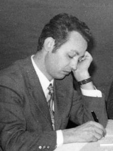 Na mizah ni opaziti kakšnih papirjev, le Janez Otoničar nekaj beleži. France Tavželj ima neko pisalo v žepku, Tone Kebe pa je položil pisalo na mizo.