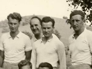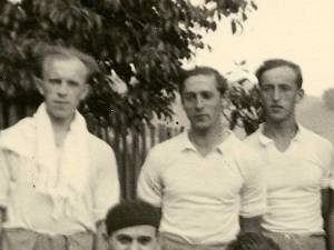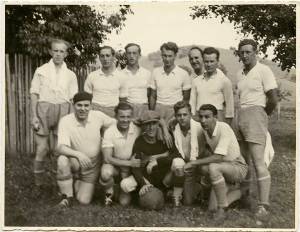 Rakovški nogometaši pred tekmo. To sklepam po čistih oblačilih in nasmejanih obrazih. Predvidevam, da so bili po tekmi bolj zmahani.