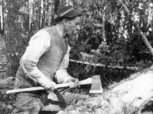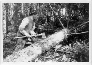 Fotograf Jože Mally je 17. marca 1949 posnel sekača v snežniških gozdovih, ki klesti in beli posekano jelko. Predtem sta jo s sodelavcem spodrezala z dvoročno žago amerikanko.
