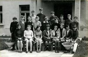 Na tej sliki pa je že kar opazen preskok iz prejšnjih majhnih pionirčkov v že kar “hude” mladince. Seveda! Saj je pred nami že 7.b razred. Dekleta sedijo v prvi vrsti, fantje pa so vzeli medse razredničarko Nado Polak.