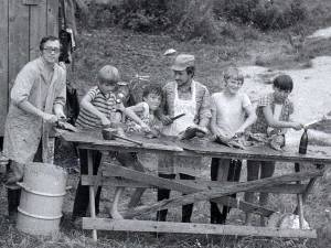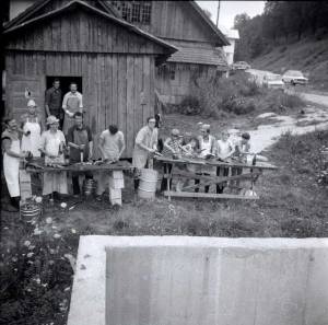 Ker je bila napovedana ribiška veselica, je bilo treba očistiti in pripraviti ulovljene jezerske ribe, ki se bodo prodajale na veselici.