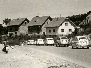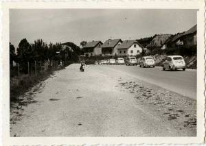 V šestdesetih letih 20. stoletja je začelo rasti naselje med črpalko in staro šolo na Rakeku. Hiše so nove. Mopedist pa se je skril ali pa odšel v eno od hiš na kavo.