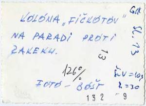 Malo naprej od bencinske črpalke se vije dolga kolona najpogostejše limuzine šestdesetih let Fiata 750, po domače Fiča oziroma še bolj po domače Fičkota. Le ti so vso pot trobili in opozarjali prebivalce na svoj praznik ter vabili k ogledu slavnostne povorke, v kateri so bila tudi vozila ostalih znamk in prav tako tovorna vozila. Namen praznika je bil, da pokažejo občanom, kako številčni so jekleni konjički v občini in kako število le-teh nenehno raste, s tem pa tudi naloge Združenja.